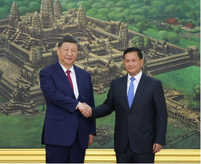 新华社金边4月17日电,4月17日晚,国家主席习近平同柬埔寨首相洪玛奈在金边和平大厦举行会谈。两国领导人一致同意携手构建新时代全天候中柬命运共同体,宣布2025年为“中柬旅游年”。