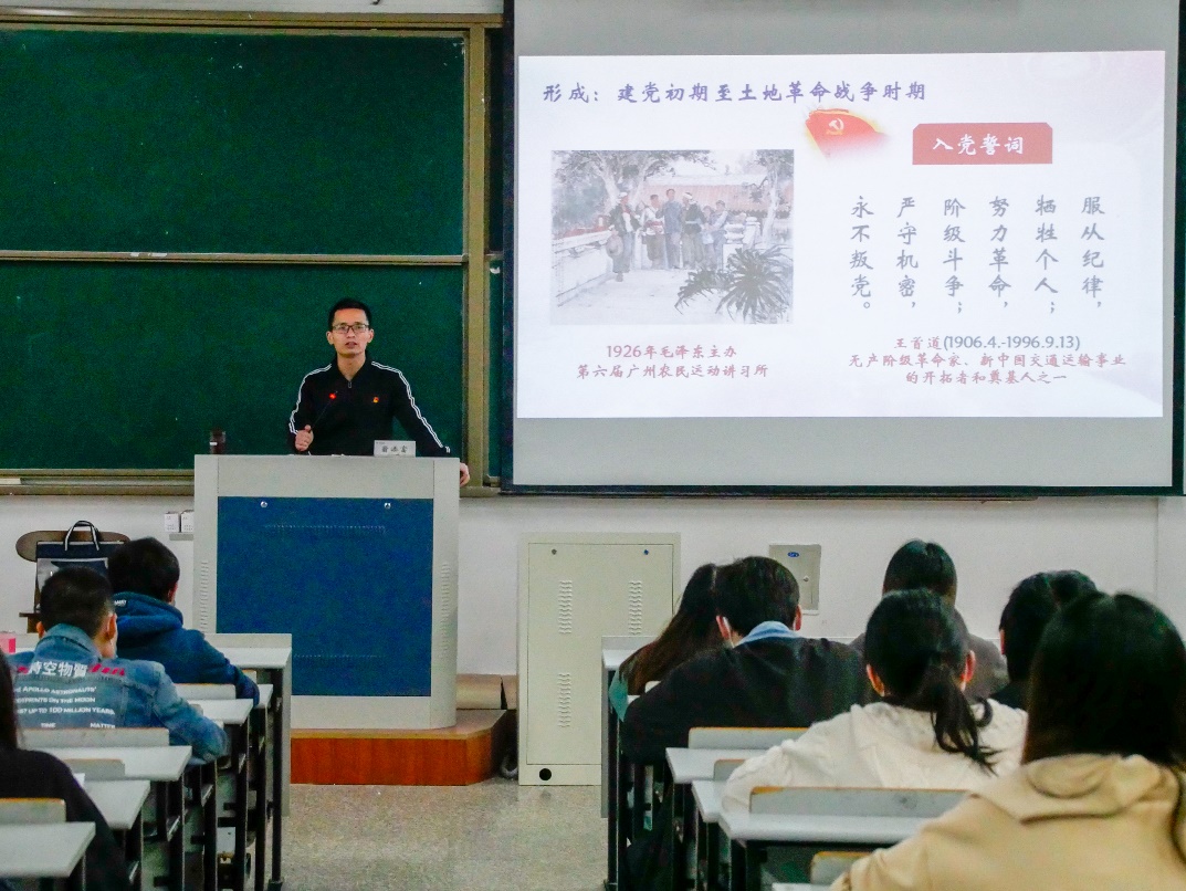 5月15日晚,太阳成集团tyc9728纪委委员、学工办主任、科学教育专业学生第二党支部书记翁添富在2-203为第十六期业余党校学员作“中国共产党入党誓词的演变与启示”专题党课,本期党校全体学员参加。