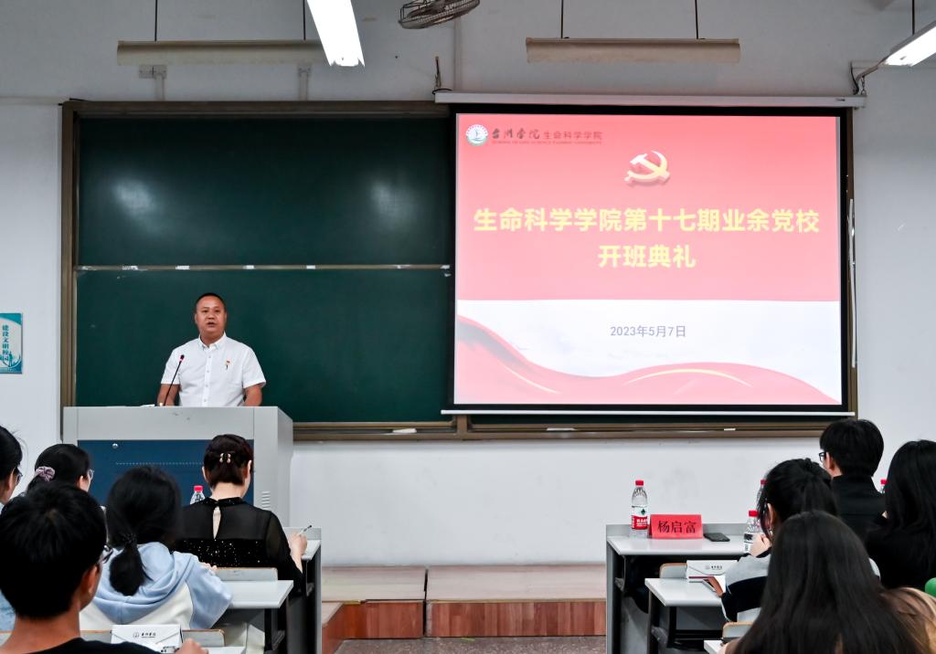 杨启富以习近平总书记给中国农业大学科技小院同学们的回信为切入点作开班典礼致辞,他指出,参加党校培训是学员们政治生活中的一件大事,通过业余党校学习帮助学员们加深对党的性质、宗旨和指导思想等理论知识的理解,进一步坚定理想信念,为报效祖国武装头脑,积蓄力量。他对学员们提出三点希望:一是要真学实学提能力,虚心钻研,通过系统完善的学习提高自身综合素质和政治素养;二是要真心实意讲忠诚,端正入党动机,树立正确三观,培养奉献精神,争做“有理想,有道德,有文化,有纪律”的“四有”新人;三是要真抓实干强担当,率先垂范,将理论学习落到实处,以优异成绩和模范言行带动身边同学,助力良好学风建设。
