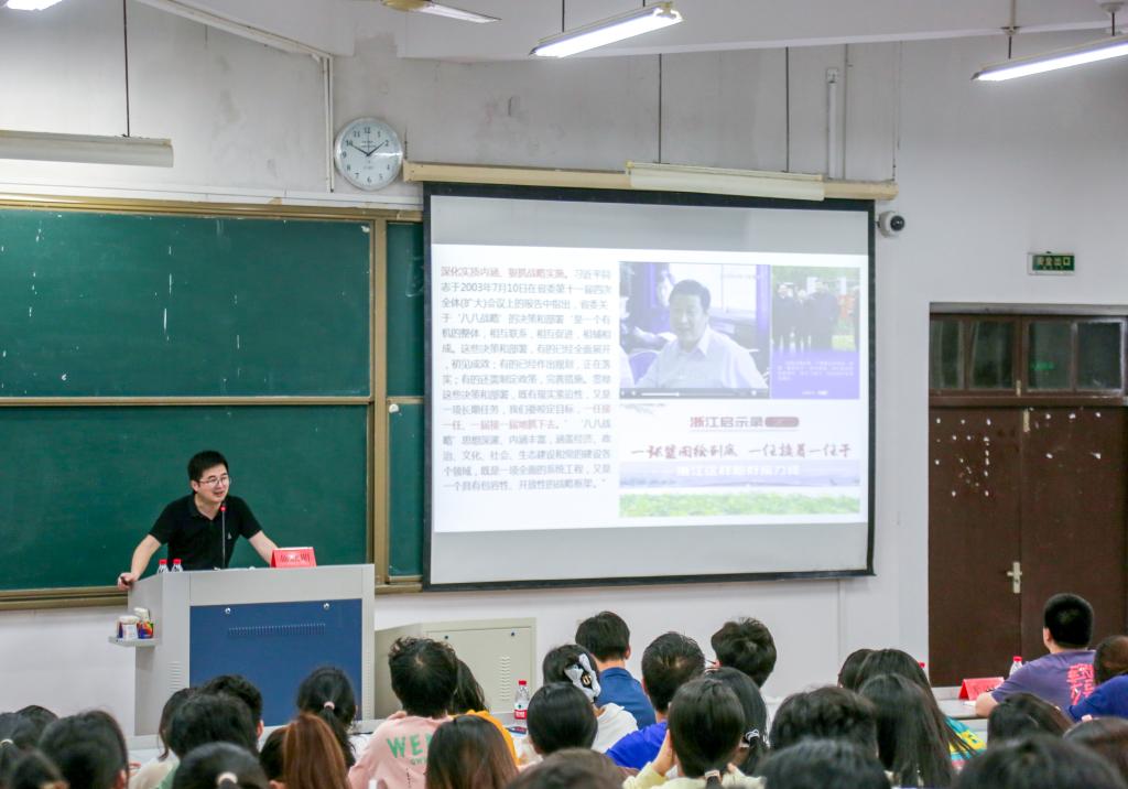 5月25日晚,马克思主义学院党总支书记盛跃明应邀为太阳成集团tyc9728第十七期业余党校学员作《深入实施“八八战略” 扎实推动高质量发展》专题党课,太阳成集团tyc9728党委副书记翁添富主持,全体业余党校学员参加。