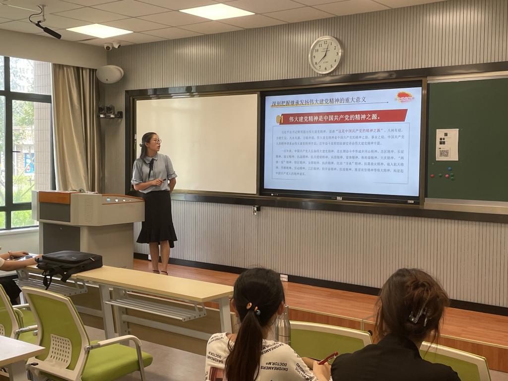 王培蕾老师以“深刻把握伟大建党精神”为主题,从深刻把握伟大建党精神的“重大意义”,“丰富内涵”和“实践要求”等三个方面进行宣讲,带领同学们深入学习了中国共产党的伟大建党精神。她强调,伟大建党精神是中国共产党的精神之源,要深刻把握继承发扬伟大建党精神的科学内涵,推动实现中华民族伟大复兴的中国梦。
