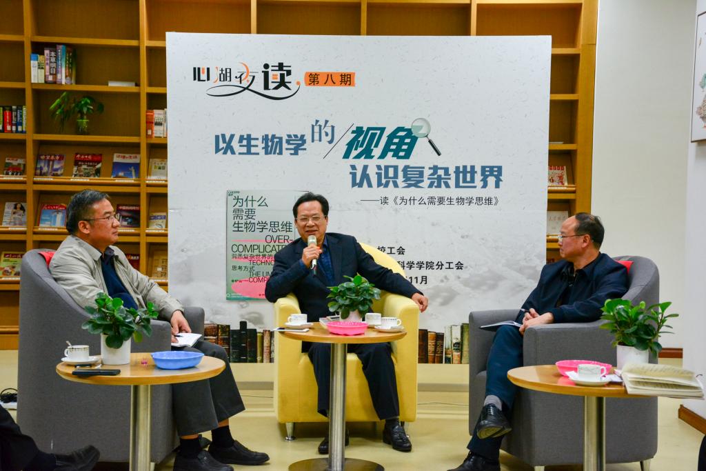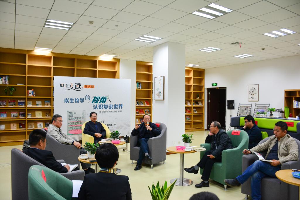 在读书心得的分享交流环节,大家结合个人的研究领域和工作实际,畅谈了什么是复杂系统、复杂系统的形成原因、面对复杂系统的正确心态、如何树立生物学思维、如何从生物学思维中汲取到更多现实的价值和意义。大家各抒己见,在夹带着人生阅历和研究感悟的交流中,不时激荡、碰撞出思想火花、智慧灵感和认知洗礼。
