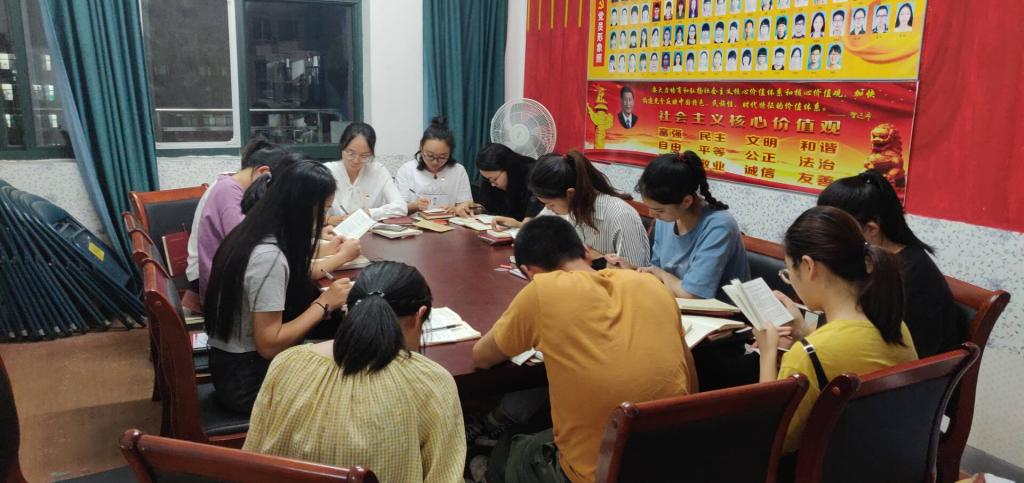 在今晚的集中自学会上,焦学诗玛、臧瑜先后领读中国共产党章程的有关内容,黄亚楠、徐雅先后分享有关中国共产党章程的研讨内容,从学生党员的角度出发,遵守党章程,争做一名合格的党员。
