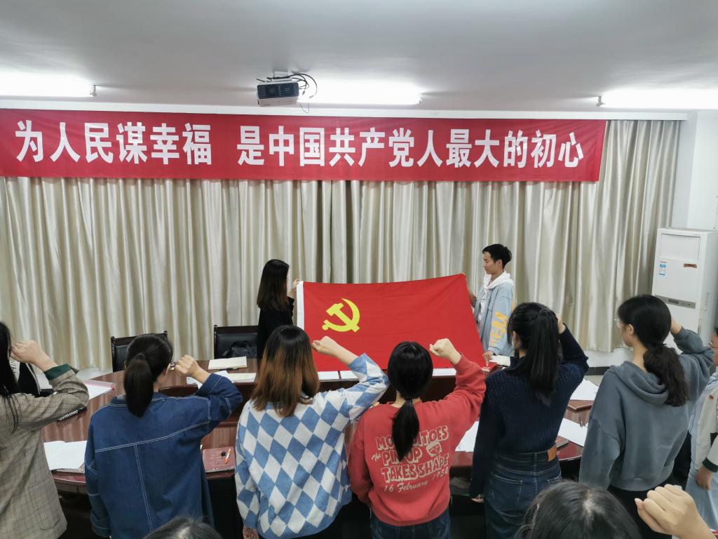 首先,党支部书记章小斌介绍党员发展大会流程,由徐丽娜等6名发展对象逐一宣读《入党志愿书》,向党组织汇报自身情况及对党的认识等。大会通过讨论决定发展对象的入党问题,经与会正式党员投票表决,大会一致同意接收徐丽娜等6名同志成为中共预备党员,为生物科学专业学生党支部注入了新鲜血液,扩大了党员队伍,在支部书记章小斌带领下新老党员在党旗下宣誓,重温入党初心。