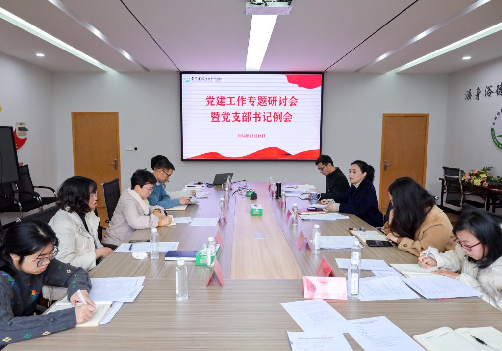 会后学院党委还召开了党建工作专题研讨会暨党支部书记例会,与会人员对照党建“双创”工作重点任务指南,结合支部特点交流分享“样板支部”创建工作思路。会议还研究了高知群体发展党员、统战、群团等方面工作,并就2025年基层党建重点工作做相应部署。