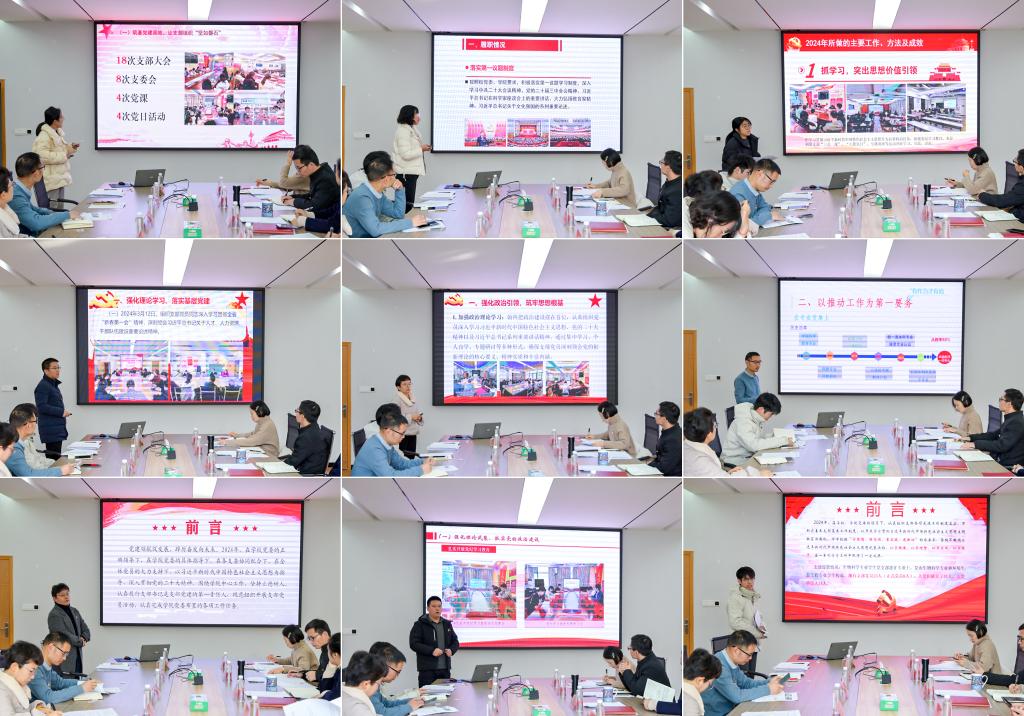 会上,9位师生党支部书记从党纪学习教育、学习贯彻党的二十届三中全会精神、落实“第一议题”制度、“三会一课”、主题党日活动、党员发展教育、工作特色成效等方面全面汇报2024年度支部党建工作,深刻剖析存在的问题,并提出改进措施及2025年工作思路。大家从不同角度分享抓基层党建工作的经验和做法,展现了学院基层党组织的良好风貌和创新活力。