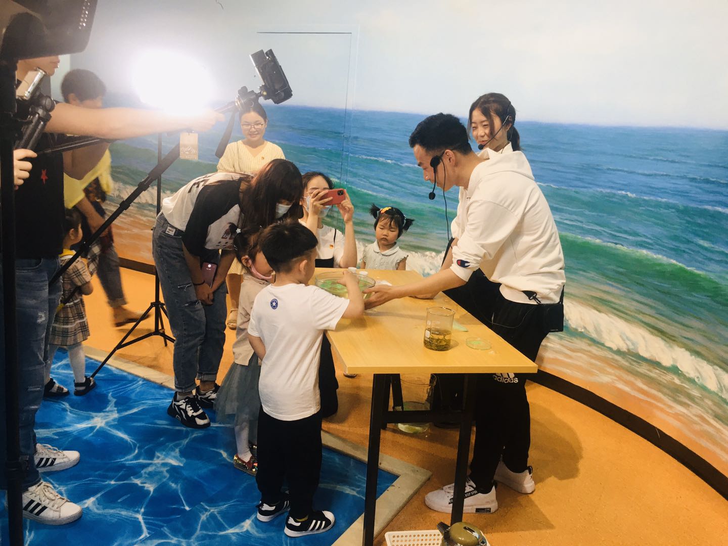 活动前期历经一个多月的准备时间,通过在支部入党积极分子中开展“科学与实验”微视频制作大赛并遴选实验方案,在经过反复的预实验、规范操作训练、校对优化台本等一系列筹备工作后,一切准备就绪。活动当天,阳光明媚,支部党员带上实验器材,共赴台州市科技馆地球与海洋展厅,现场演示创新科技环保实验。