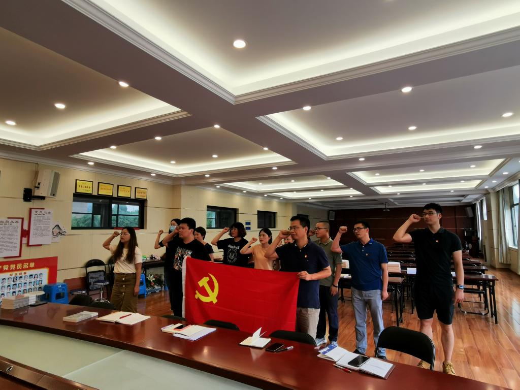 为纪念中国共产党成立99周年, 巩固拓展“不忘初心、牢记使命”主题教育成果,6月23日,太阳成集团tyc9728环境工程教工党支部在学院党员之家开展“迎七一 践初心”主题党日活动,重温入党誓言。会议由党支部书记宗恩敏主持,全体支部成员参加,学院副院长蒋胜韬以普通党员身份参加。