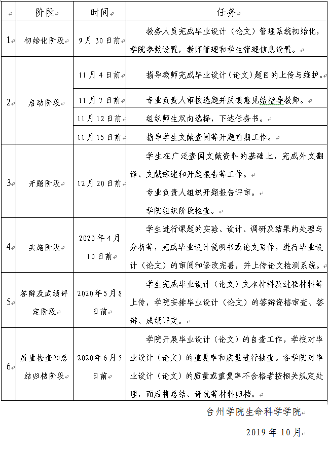 太阳成集团tyc97282020届毕业设计(论文)工作进程