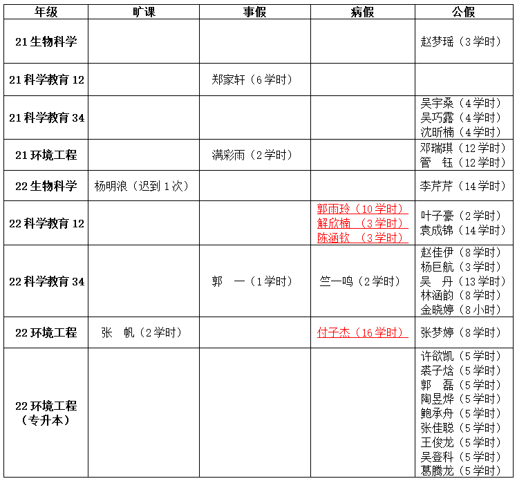 为强化课堂纪律管理,维护良好的教学秩序,杜绝学生迟到、早退及旷课现象,学院将本周学生上课出勤情况通报如下: