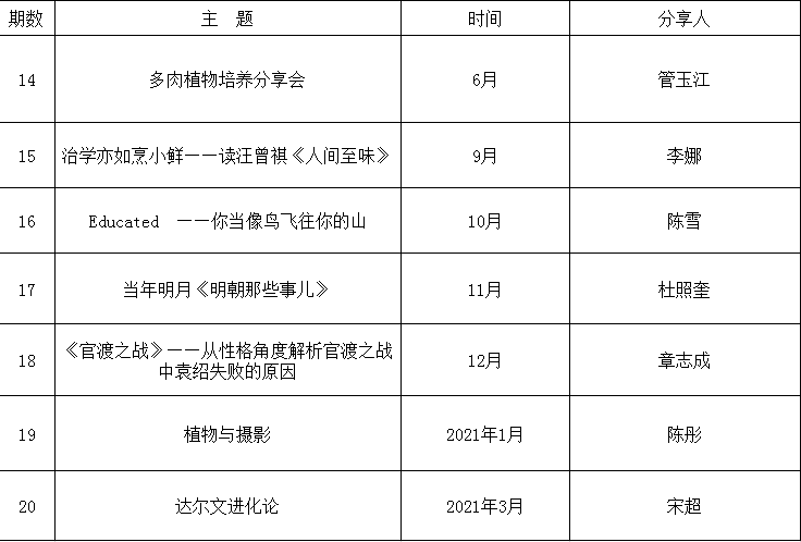 2、每一期读书分享会的主题可能会根据分享人的实际情况略作调整。