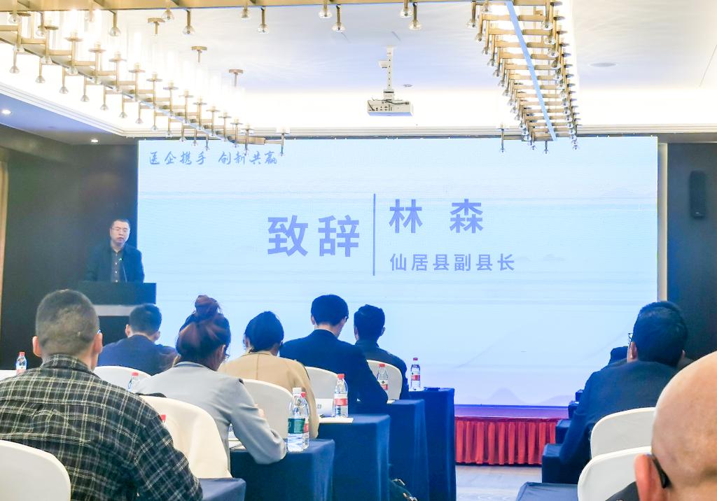 林森代表仙居县政府对出席本次活动的各位嘉宾表示衷心的感谢和热烈的欢迎,希望各方以此次合作为契机,探索开展高层次人才“双落地”合作新模式,推动高层次人才创新创造在仙居,任职兼职在高校,实现校企人才“互聘共享、双向流动”的效果。