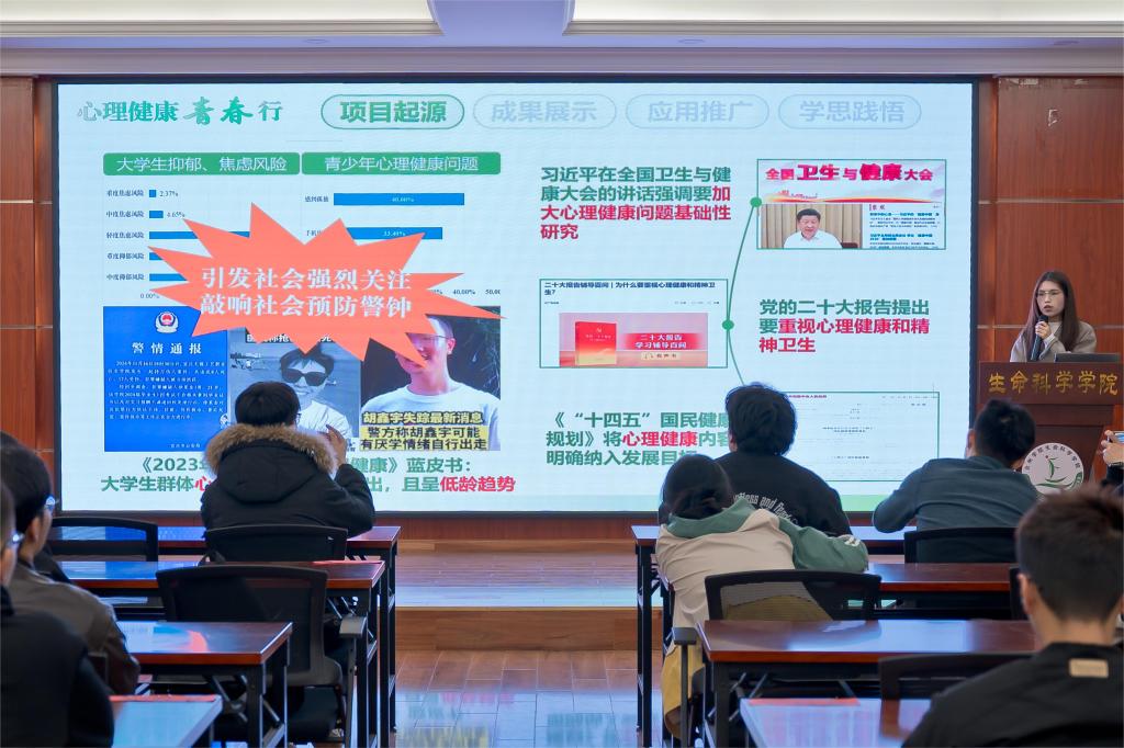 会上,生命学院“知心支教”实践队和“大学生积极心理健康素养调查”实践队依次作分享,通过PPT阐述及生动的实践视频,向同学们讲述实践故事,交流实践经验,分享实践心得,展现了生命学子在暑期社会实践活动中的精彩表现。同学们纷纷表示此次活动收获颇多,对未来的实践活动满怀憧憬,跃跃欲试。