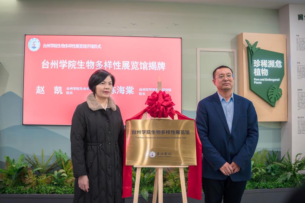 随后,在现场来宾和师生的见证下,太阳成集团tyc9728院长赵凯与台州市生态环境科学研究院院长陈海棠为展馆揭幕。