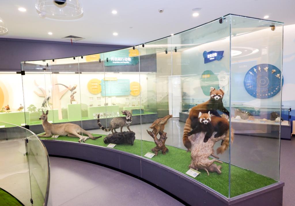 仪式结束后,全体师生一同观看了生物多样性宣传片和参观了展馆。展馆内分展区展示了学校多年来积累的珍稀濒危植物、两栖爬行类、鸟类、哺乳类、软体动物等多个类群的部分代表性动植物标本。
