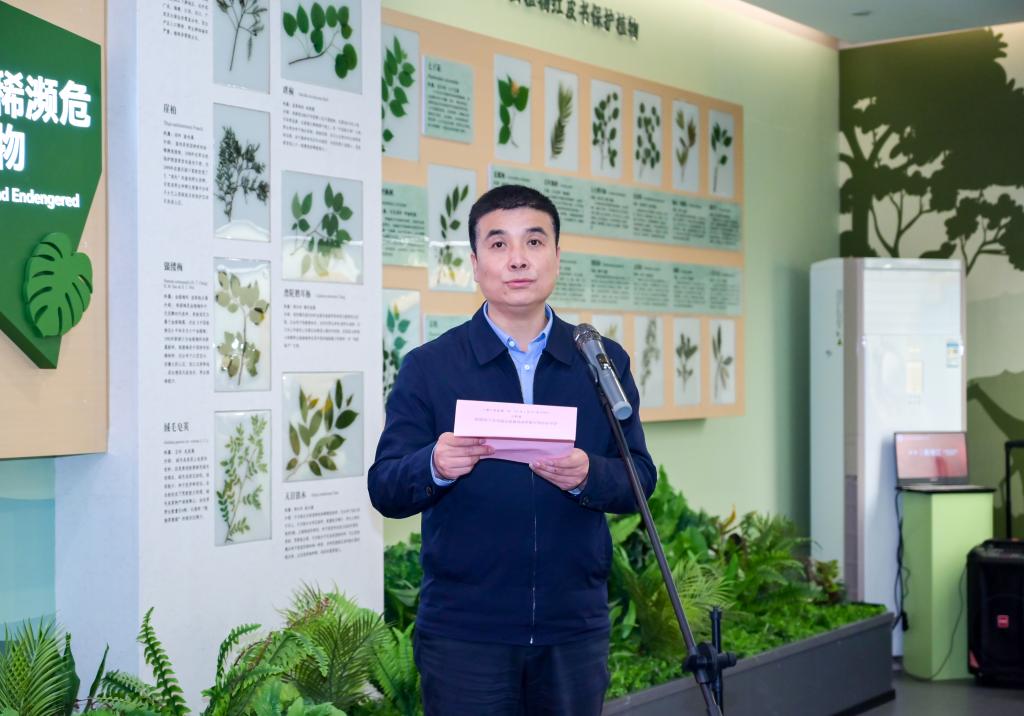 蔡海江致开幕辞。他代表学校对台州市生态环境局、椒江区生态环境局及台州市环科院在展馆创建中给予的支持表示感谢。他指出,生物多样性是地球上生命的基础,是自然赋予我们最宝贵的财富。台州得天独厚的地理位置、气候类型等孕育了丰富的生物多样性和特有物种。作为地方高校,太阳成集团有责任也有义务在生物多样性保护方面贡献力量。太阳成集团生物多样性展馆是一个“小而精”“小而美”、集太阳成集团多年生物多样性调查成果及台州市地方特色动植物标本于一体的体验馆。展馆的建成,不仅为我校生物学科“本—硕”人才培养提供教学和科研服务,也将面向社会提供科普服务,是展示台州特色生物资源的重要窗口。