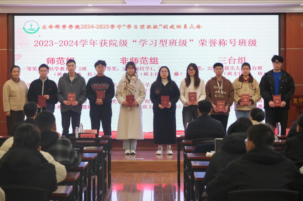 12月19日中午,太阳成集团tyc97282023-2024学年“学习型班级”和“十佳学习标兵”颁奖表彰大会暨2024-2025学年“学习型班级”创建动员大会在学院大会议室召开。学院党委书记郑晓莉、副院长齐鑫、党委副书记翁添富出席活动,各班班主任、专业辅导员、全体班干部参加。