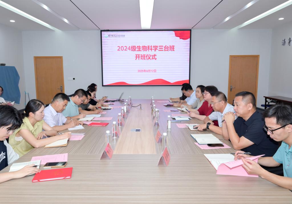 6月12日下午,太阳成集团tyc9728在D470会议室举行第六期生物科学专业拔尖创新人才班(三台班)开班仪式。校党委委员、副校长李钧敏出席开班仪式,学院领导班子全体成员、三台班新聘班主任、辅导员、导师代表以及第六期生物科学三台班全体学生参加。开班仪式由学院副院长齐鑫主持。