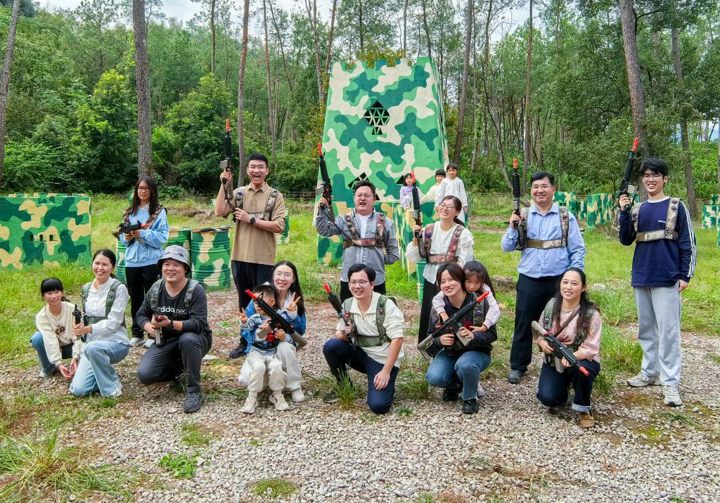 午后,活动进入高潮——亲子互动与团队体验环节。卡丁车赛道上,孩子们化身“赛车手”,在蜿蜒的赛道上体验着速度与激情;马术区内,大家在教练指导下小心翼翼地抚摸马匹、尝试骑行,感受着与动物和谐相处的乐趣;真人CS战场上,穿上装备的老师们迅速“变身”,在掩体间灵活穿梭,协同突击,欢笑声与“枪声”此起彼伏,将团队协作精神发挥得淋漓尽致。