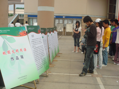 为了更好地营造迎评促建的良好氛围,强化同学们的文明规范意识。学院特举办了这次校园文明用语征集评选活动。该活动变过去“一人拟稿,领导点头”的封闭式采集方法,而是发动全院学生参与的开放型举措。同学们积极参与,竟相投稿,征集到内容涉及立志奋进、勤俭节约、迎评促建、学风建设、文明礼仪等各类标语达200多条。并于5月8日下午,对粗选后的80多条标语在学校教学长廊举行标语成果展以及评选活动。