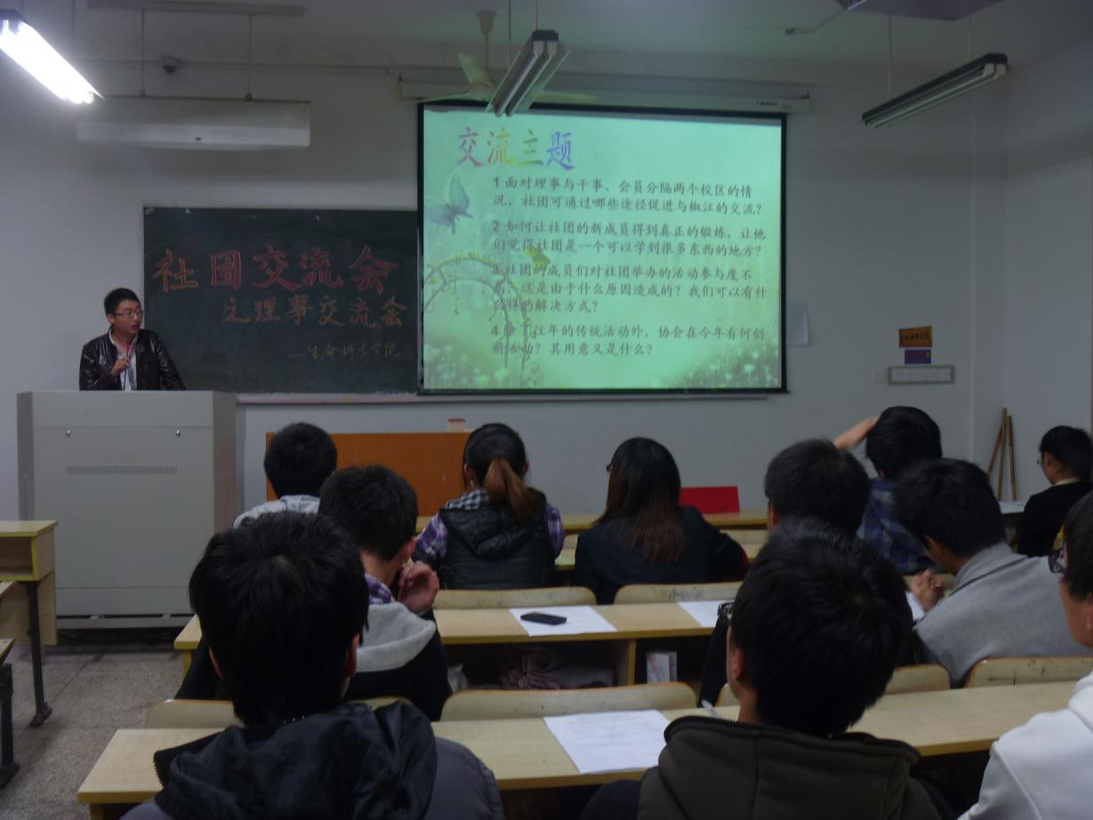 本次社团交流会包括临海校区理事交流会和椒江校区干事交流会。理事交流会上,各协会负责人分别用电子书等形式向大家详细介绍了各协会的活动历程并认真填写问卷调查表,加强了协会间职能的认识,良好的促进了社团部与协会间的交流。干事交流会中,驿站传书、坐地起身、地雷阵等新颖有趣的活动,充分调动了大家的积极性,大家相互协作,共同挑战,将合作精神的重要性深入到每一位协会干部的心中。交流会在大家轻松的嬉笑声中圆满结束。