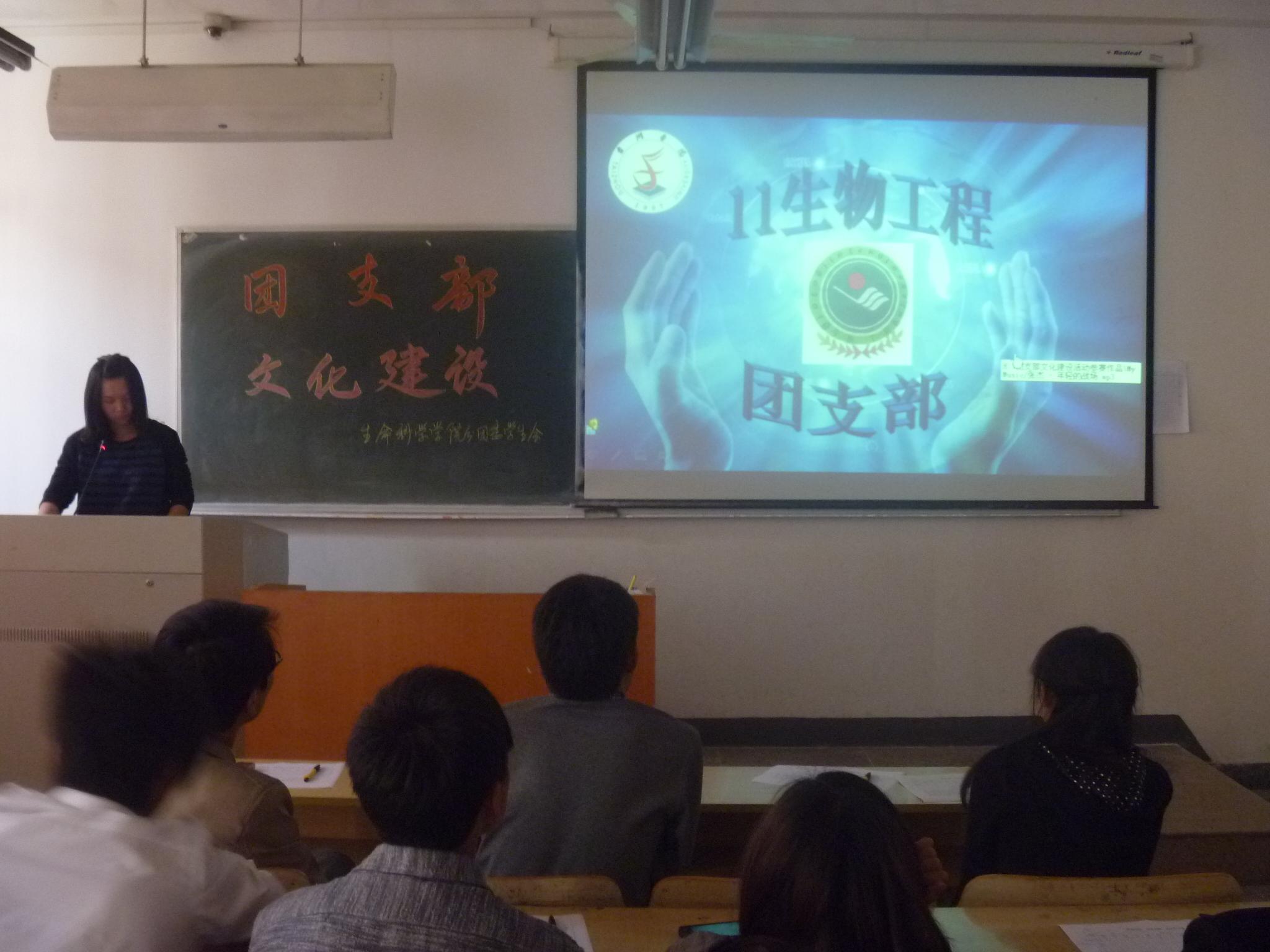 此次活动针对11级团支部展开,由“团支部风采展”与“团支部生活秀”两部分组成。活动现场,11级各团支部首先向评委展示了其色彩华丽、个性突出的支部海报,设计专业鲜明、寓意深刻的班徽,向大家充分传达了其积极进取、刻苦向上的团支部文化精神。随后,各班团支部通过PPT与视频相结合,展现大学活动的精彩片段,秀出大学校园的美好景象,定格大学生活的美丽瞬间,并以此传达团支部多彩的精神文化内涵。最后,11生物教育团支部凭借其造型独特、寓意贴切的班徽,“乐学·善思·笃行”的支部理念,自然贴切、精彩纷呈的视频短片获得此次活动的冠军。