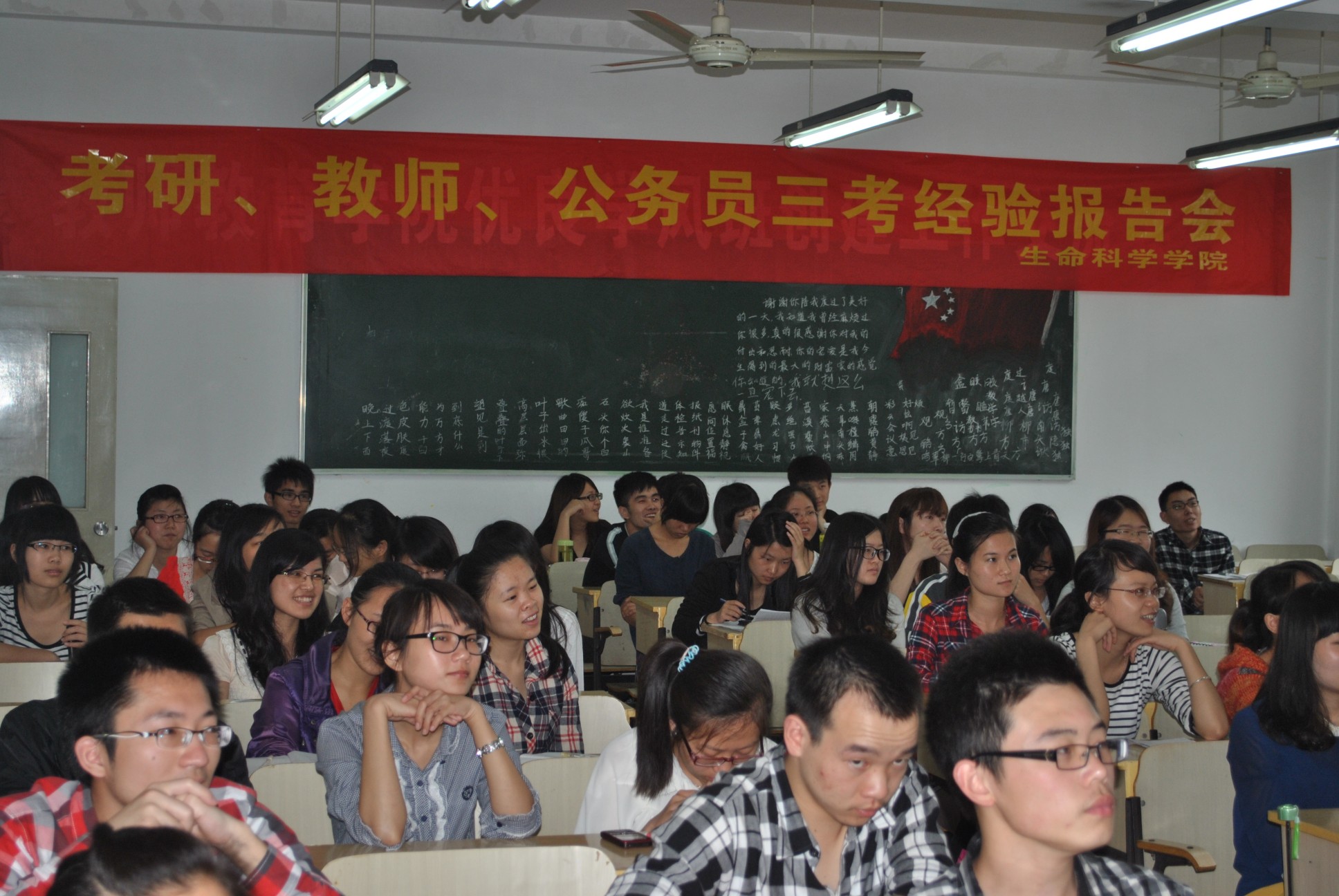本次交流会系第三届生命科学节“钻研”篇章的子活动,其解决了同学们在考研、考教师、考公务员过程中遇到的疑惑,让广大同学汲取先人经验,更好地做出人生选择,明确未来目标,为早日成功奠定坚实基础。