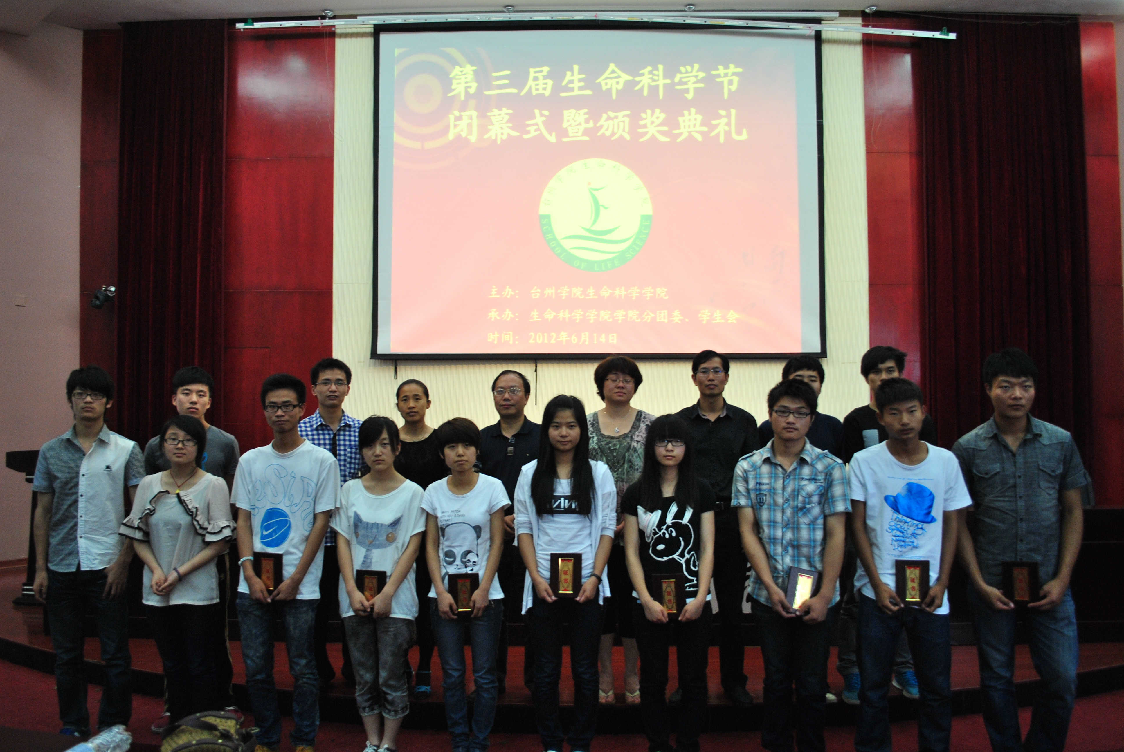 随后,盛大隆重的颁奖典礼圆满进行,学院党政领导李钧敏、王金宝和柯世省为在本届生命科学节中取得优异成绩的学生代表颁发奖状并合影留念。在继优秀学生代表楼潇潇发表获奖感言之后,太阳成集团tyc9728第三届生命科学节在全院师生的热烈掌声中圆满闭幕。