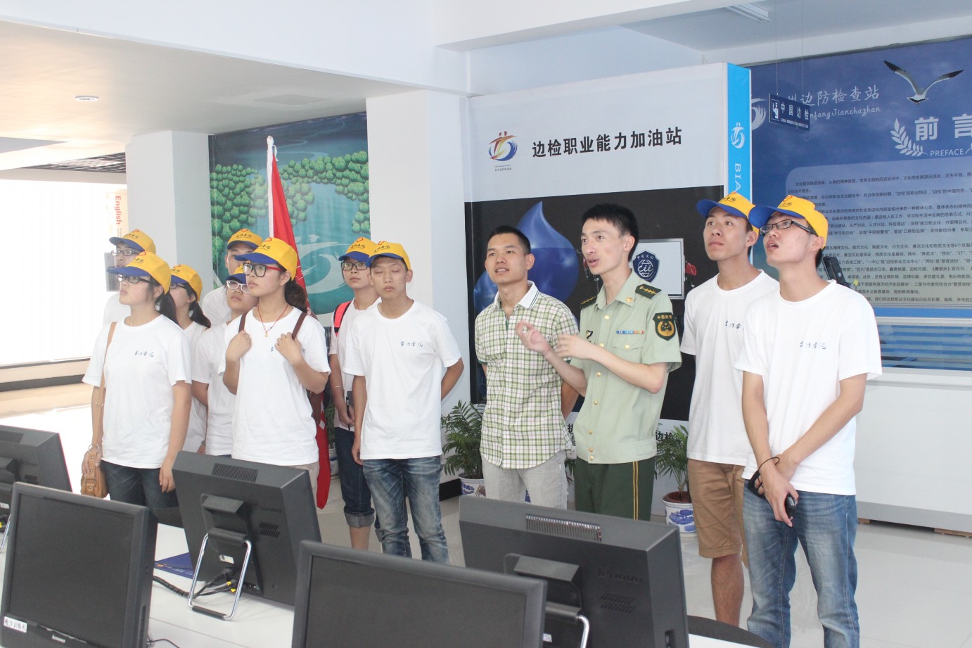 7月11日上午,太阳成集团tyc9728“阳光边检”暑期社会实践队在台州边检站领导的带领下,参观了台州边防检查总站职业文化中心和历史发展馆。