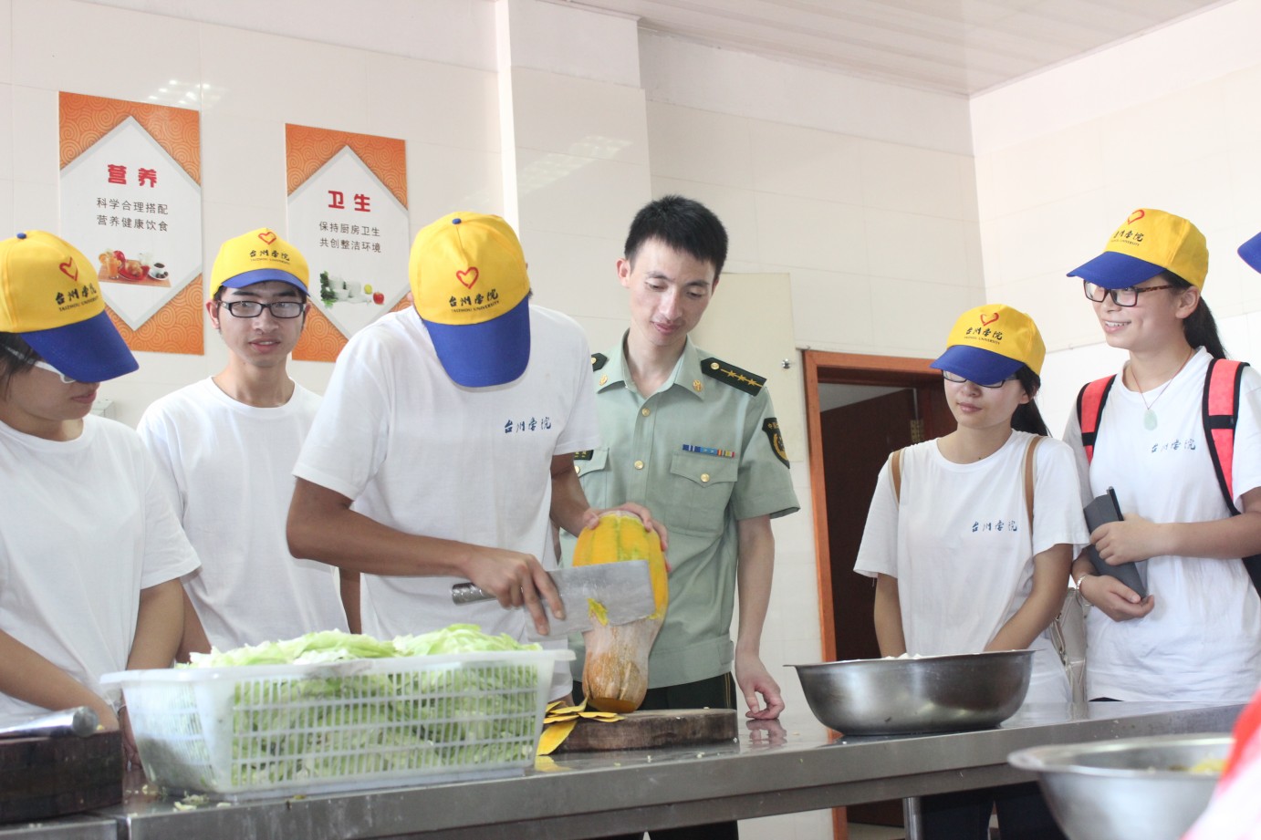 随后,“阳光边检”实践队队员们来到厨房帮厨,刨南瓜、切青菜,亲身感受炊事班战士的艰辛与乐趣。最后,大学生们与战士们共同用餐,体验部队生活。