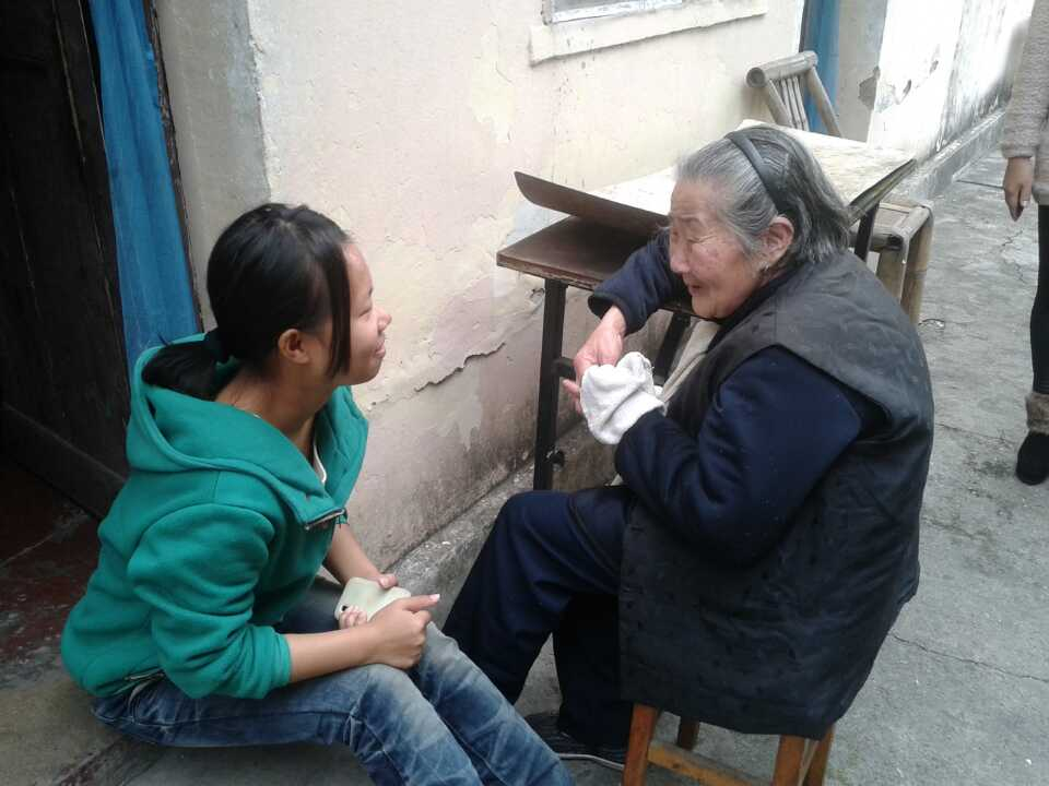 同学们抵达敬老院后,就开始分头行动。有的同学和老人们聊天,听他们讲述年轻时的故事和现在的生活状况,了解他们心中的希冀和期盼;有的同学主动拿起扫把,扫去地上堆积的落叶和垃圾,为老人们营造一个干净舒适的居住环境;有的同学为老人剥开橘子,小心翼翼喂老人食用,一张张饱经沧桑的脸上满是微笑。两小时的志愿服务时间很快过去,合影留念后,同学们和老人们一一告别。临走前,一位老奶奶亲切地拉着同学的手叮嘱她要多穿些衣服,一位老爷爷激动地拿出了珍藏在口袋里的香烟想和大家分享,更有一位年迈患病的老奶奶执意要将同学们送下山去。