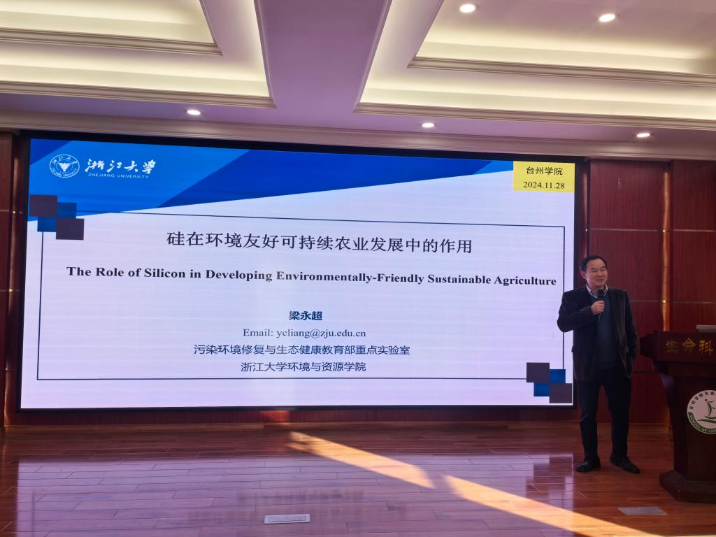 2024年11月28日,浙江大学梁永超教授应邀来我校太阳成集团tyc9728开展学术交流,并作了题为《硅在环境友好可持续农业发展中的作用》的学术报告。