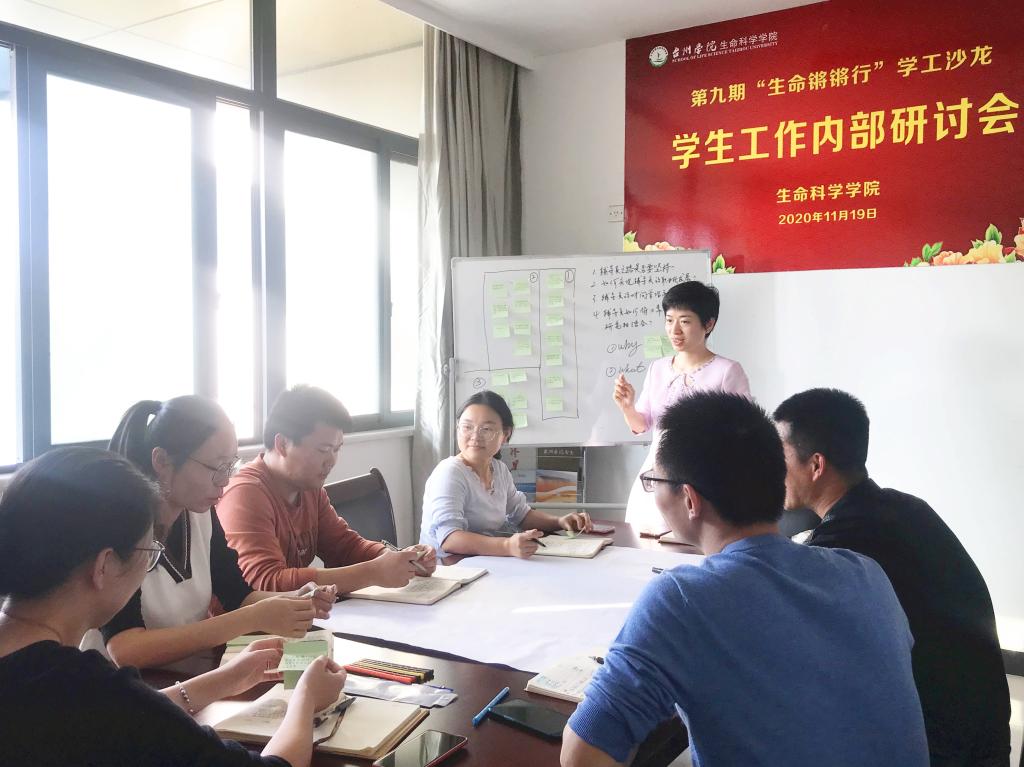 11月19日,第九期“生命锵锵行”学工沙龙在学院书香小屋如期举行。学院党总支副书记徐敏出席并主持沙龙,全体辅导员参加研讨。
