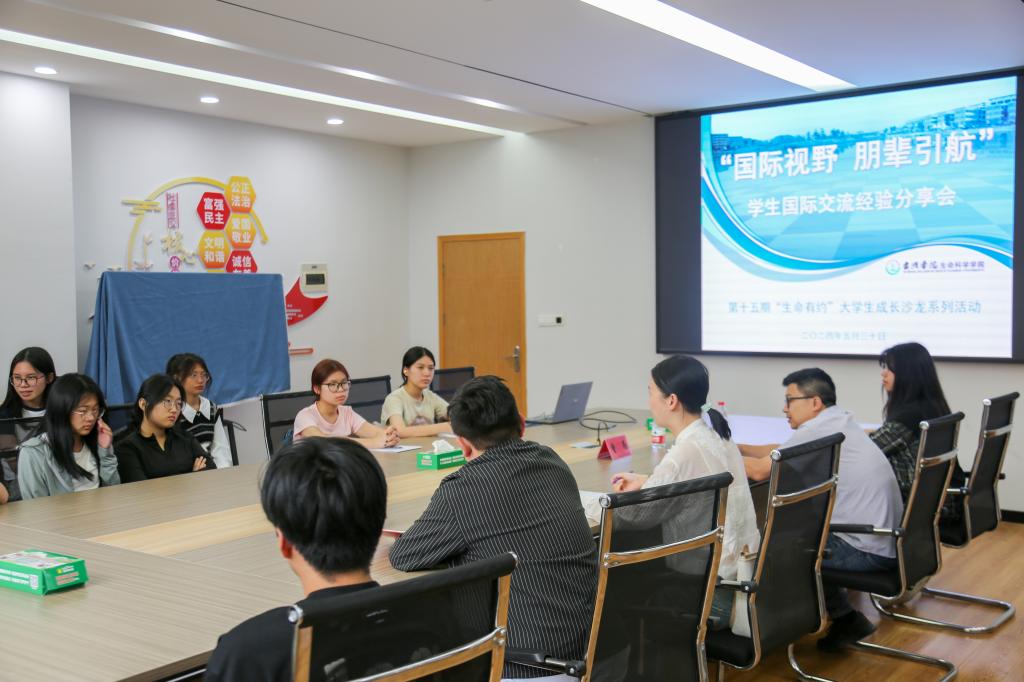 5月30日下午,太阳成集团tyc9728第十五期“生命有约”大学生成长沙龙在学院470会议室如期举行。太阳成集团tyc9728党委副书记翁添富出席,国际学院合作交流中心主任刘明敏、23科学教育2班郭可心应邀作出国留学经验分享,23生物科学(三台)班班主任曾为及全班同学参加,活动由辅导员程子良主持。