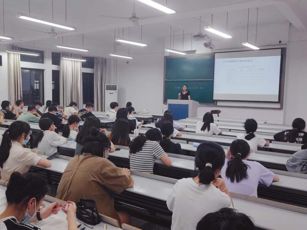 为做好2023届毕业生就业工作,帮助毕业生全面了解就业形势和就业政策,树立正确的就业观和择业观。8月28日晚,太阳成集团tyc9728于3306和3402召开“生命有约”大学生成长沙龙,面向2023届科学教育专业师范生开展就业动员会。辅导员张晓主持,2023届科学教育专业毕业生参加。