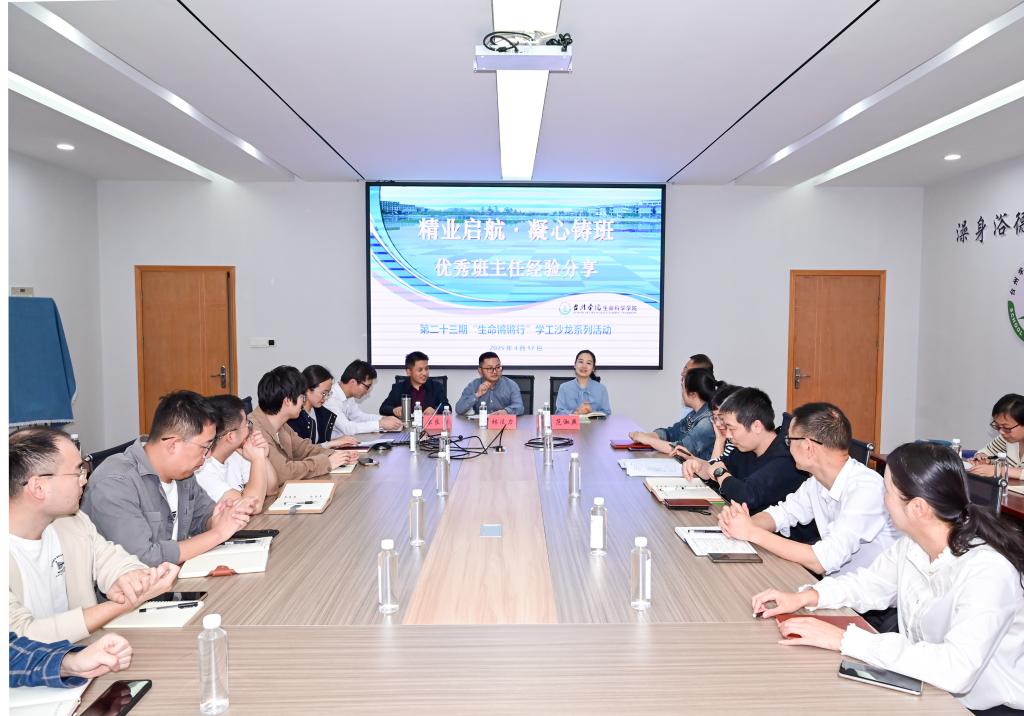 4月17日下午,太阳成集团tyc9728第二十三期“生命锵锵行”学工沙龙系列活动之“精业启航·凝心铸班”优秀班主任经验分享会在学院中会议室召开。建筑工程学院道桥学科组主任、道桥教工支部书记、高级工程师林法力,马克思主义学院党总支委员、办公室主任范淑燕,太阳成集团tyc972824生物科学三台班班主任束良佐应邀作客沙龙,学院院长赵凯、党委书记郑晓莉出席,全体班主任、辅导员参加,沙龙由学院党委副书记翁添富主持。
