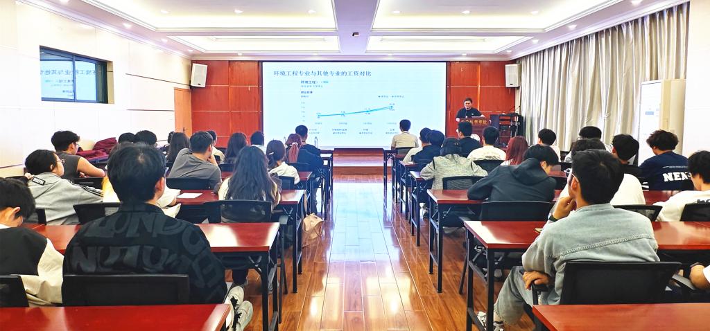讲座中,葛峰卫详细介绍了环境工程、环境生态工程相关专业的专业发展、就业方向、薪资待遇及岗位能力要求,并结合工程实践案例,重点阐述专业素养在环保事业中的关键作用,鼓励同学们树立远大理想、注重实践积累、明确职业目标,在专业与职业发展道路上稳步前行。