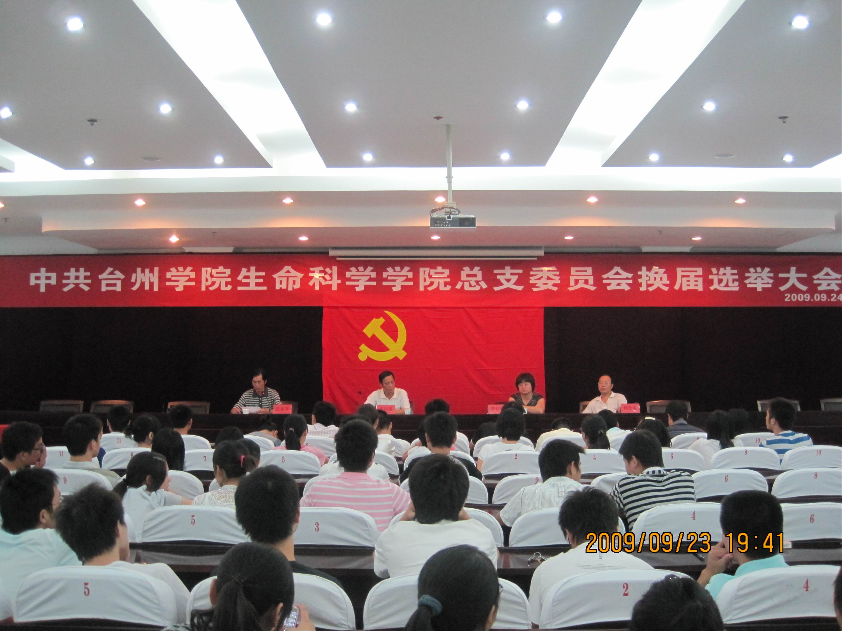 正值中国共产党华诞88周年、国庆60周年大庆之际,9月24日晚,生命学院党总支换届选举党员大会在学术报告厅隆重举行。会议听取了上届总支委员会工作报告,选举产生了新一届党总支委员会。 学...