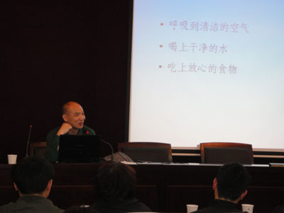 5月14日晚,台州市环境科学设计研究院万林院长应邀来校为我院师生作题为“台州生态安全问题及对策”的报告,学院主持工作副院长李钧敏教授主持了报告会。 会上,万院长以什么是生态安全开头,指出台州目前存在的主要...