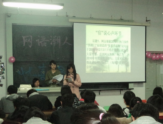 为引导大学生正确对待如雨后春笋般出现的网络语言,处理好网络语言与规范语言之间的关系,学会用辨证的眼光去洞察网络语言中的糟粕和精华,3月27日晚,我院特举办“你说我说”校园创意生活汇之“网语潮人忧喜录”活动...
