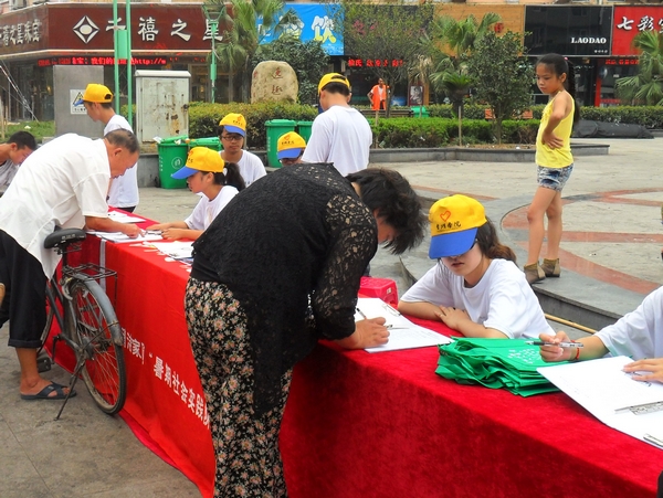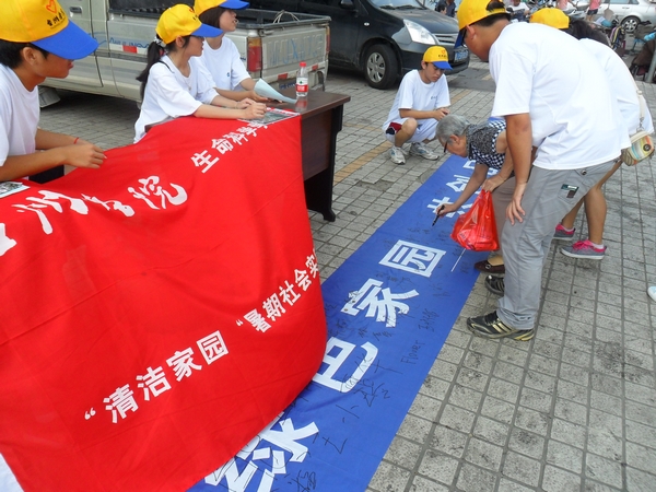 太阳成集团“清洁家园”暑期社会实践队在大洋社区、杜桥街道和大田街道三个地点开展了“清洁家园,和谐乡村”绿色行活动。 活动中,队员们向街上的路人介绍并宣传了活动的目的,通过展板,以及队员们绘声绘色的描述,市...